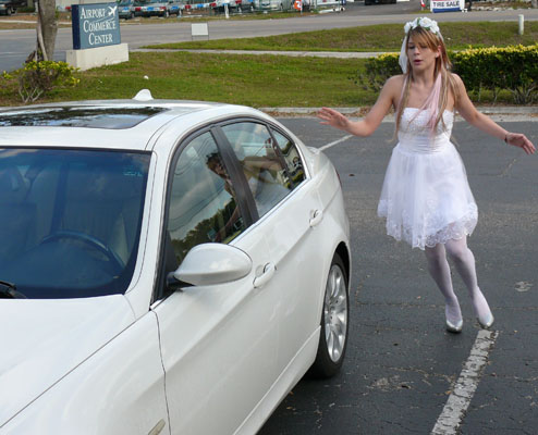 After a brief deepening, our runaway bride wakes up and now she has no recollection of what just happened. All she remembers is getting into her car. Interestingly enough, she now believes to be a Superheroine and that I cannot touch her. Needless to say, my comment that she is nothing more than a fembot (with a program that makes her believe to be a Superheroine) and that there is something wrong with her programming, makes her feel quite upset.